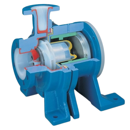 Texel magnetic drive sealless PFA lined centrifugal pumps for leak-free pumping of corrosive, toxic and odourous chemicals. The magnetic coupling means a 100% sealed pump. All wetted parts in materials are resistant to the specific medium. Robust construction with outer casing made of protective lacquered cast iron. The pumps can handle extremely aggressive liquids without the risk of leakage to the surrounding environment.